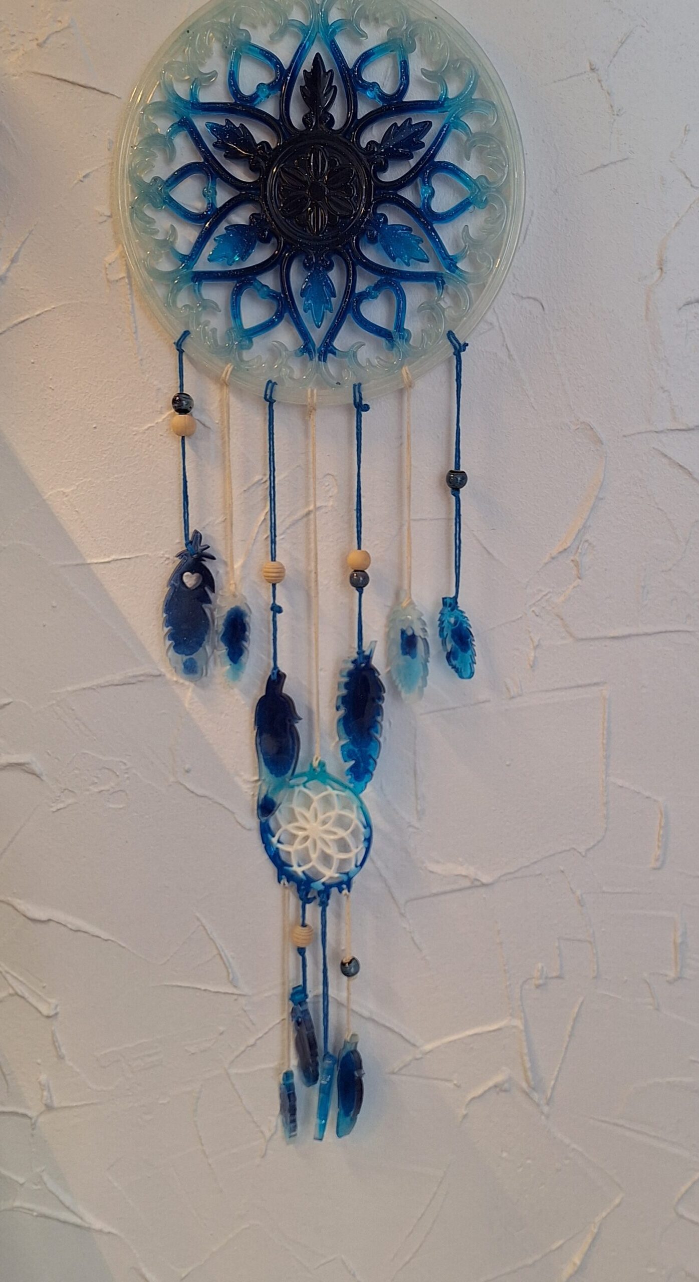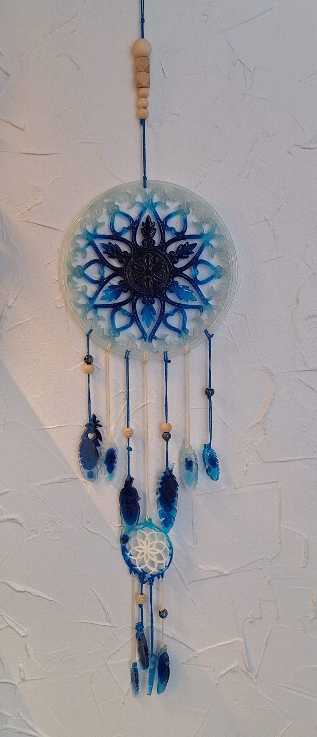 Envie de retrouver des nuits sereines ? Installez ce magnifique attrape-rêve en résine époxy au-dessus du lit de votre chambre à coucher pour profiter d’un sommeil réparateur.