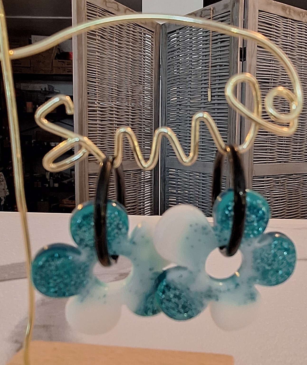 Boucles d’oreilles en résine epoxy.