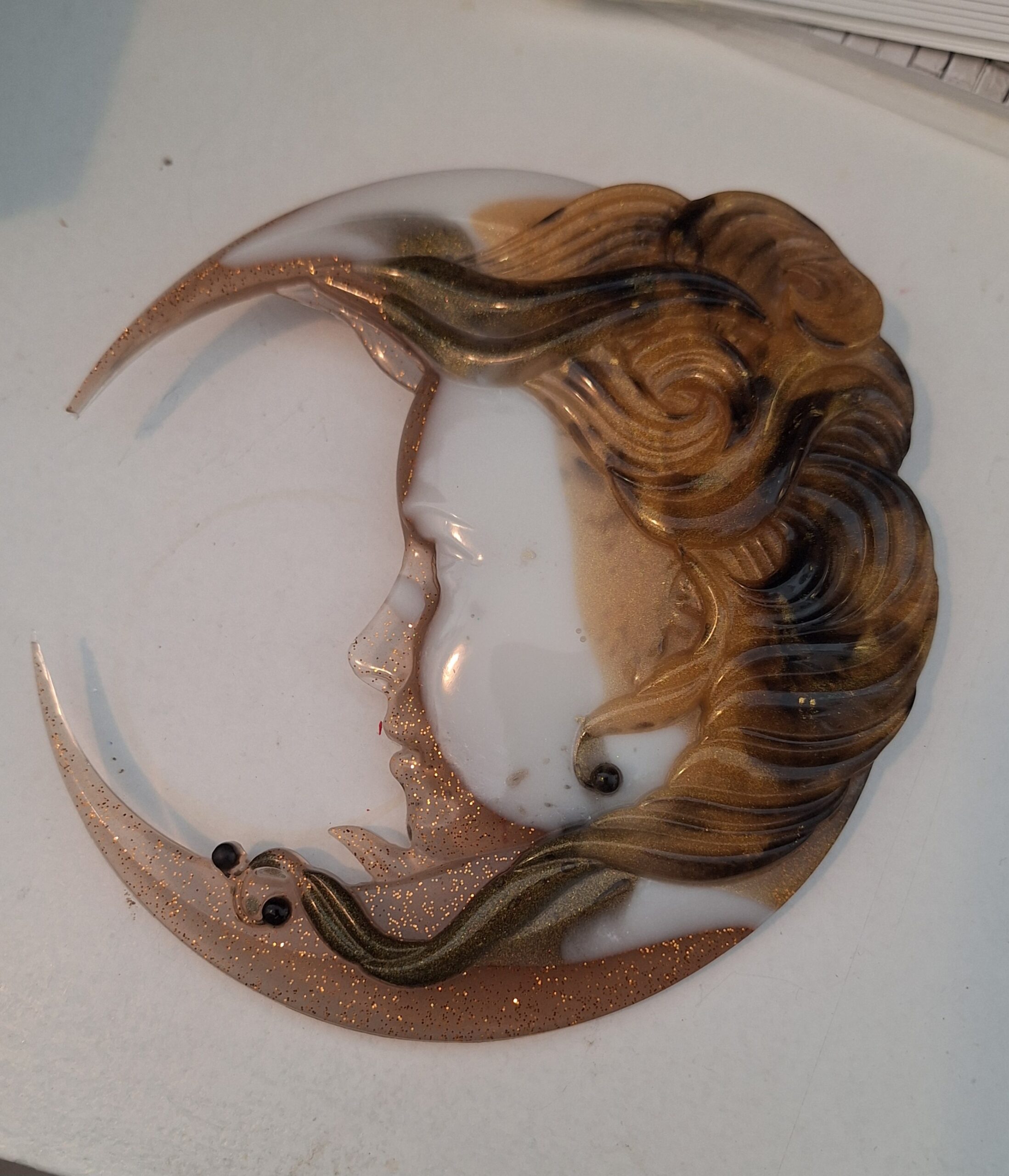 Description du visage femme lune en résine époxy